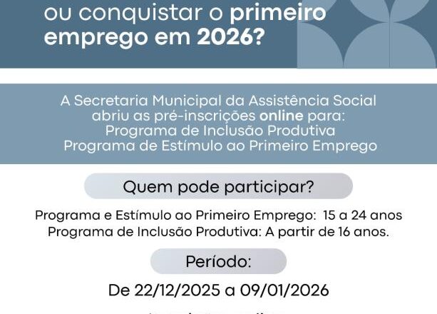 Secretaria de Assistência Social abre pré-inscrições para cursos do Programa de Inclusão Produtiva e Programa de Estímulo ao Primeiro Emprego
