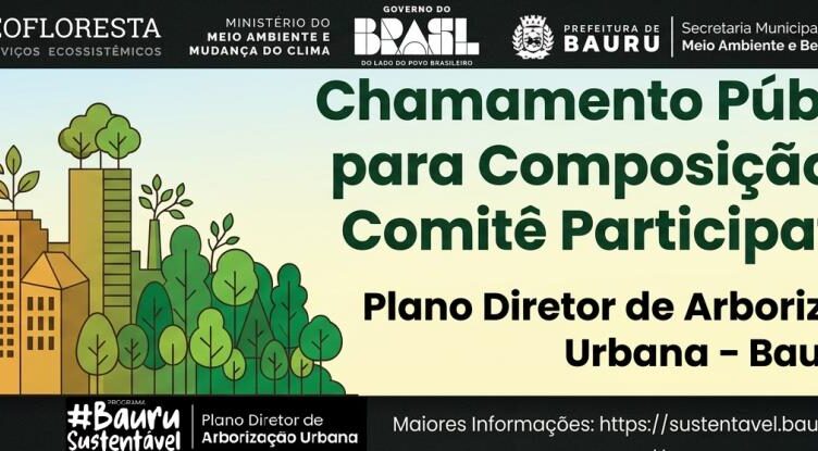 A Prefeitura de Bauru, por meio da Secretaria do Meio Ambiente e Bem-Estar Animal (Semab), vai publicar no Diário Oficial deste sábado (21) o edital do chamamento público para manifestação de interesse de representantes da sociedade civil para a composição do Comitê Participativo do Plano Diretor de Arborização Urbana (PDAU), que está em fase de elaboração pela empresa Neofloresta Serviços Ecossistêmicos, vencedora da licitação realizada pelo município.