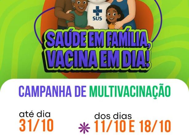 A Prefeitura de Bauru, através da Secretaria de Saúde, realiza até o dia 31 de outubro a campanha de Mulltivacinação, com o tema ‘Saúde em família, vacina em dia’. A ação integra o esforço nacional coordenado pelo Ministério da Saúde para ampliar a cobertura vacinal e reforçar a proteção da população.