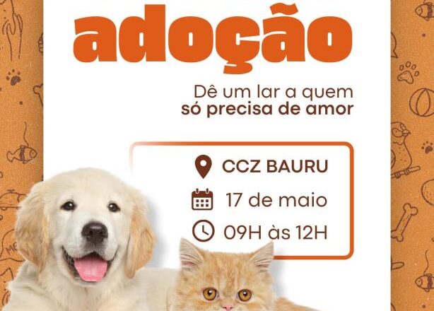 O Centro de Controle de Zoonoses (CCZ) de Bauru estará de portas abertas no sábado (17), das 9h às 12h, para mais uma campanha de adoção de cães e gatos. A ação é da Prefeitura de Bauru, através da Secretaria do Meio Ambiente e Bem-Estar Animal (Semma), com apoio da Secretaria de Saúde e do CCZ.