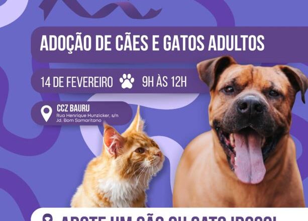 A Prefeitura de Bauru promove neste sábado (14), das 9h às 12h, o evento ‘Adote um Amigo’, no Centro de Controle de Zoonoses (CCZ). A ação, realizada pela Secretaria do Meio Ambiente e Bem-Estar Animal (Semab) com apoio do CCZ, integra o Programa ‘Amigo Caramelo’ e tem como objetivo incentivar a adoção responsável de cães e gatos adultos e idosos que aguardam um novo lar.