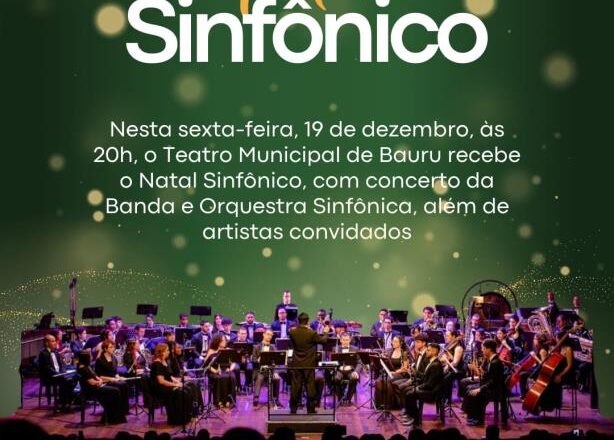A Prefeitura de Bauru encerra a programação artística da quarta edição do ‘Natal EmCantos’ com o concerto ‘Natal Sinfônico’, que será realizado no Teatro Municipal ‘Celina Lourdes Alves Neves’ nesta sexta-feira (19), às 20h. A apresentação será da Banda Sinfônica e da Orquestra Sinfônica, com a participação de coralistas da Coordenadoria de Políticas Públicas de Ensino às Artes – antiga Divisao de Ensino às Artes (DEA) e de artistas convidados. A entrada é gratuita, e os ingressos devem ser retirados a partir das 19h, no Teatro Municipal.