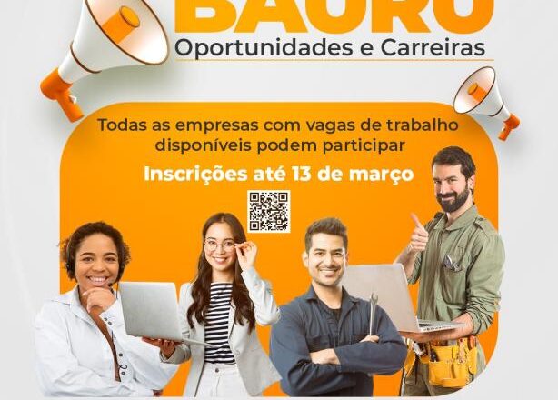 São estimadas mais de 2.500 vagas de emprego, disponibilizadas por mais de 30 empresas de Bauru e região. As empresas interessadas em participar podem fazer suas inscrições até o dia 13 de março, no formulário online disponível em https://forms.gle/NvfZrARMxGUy93HRA